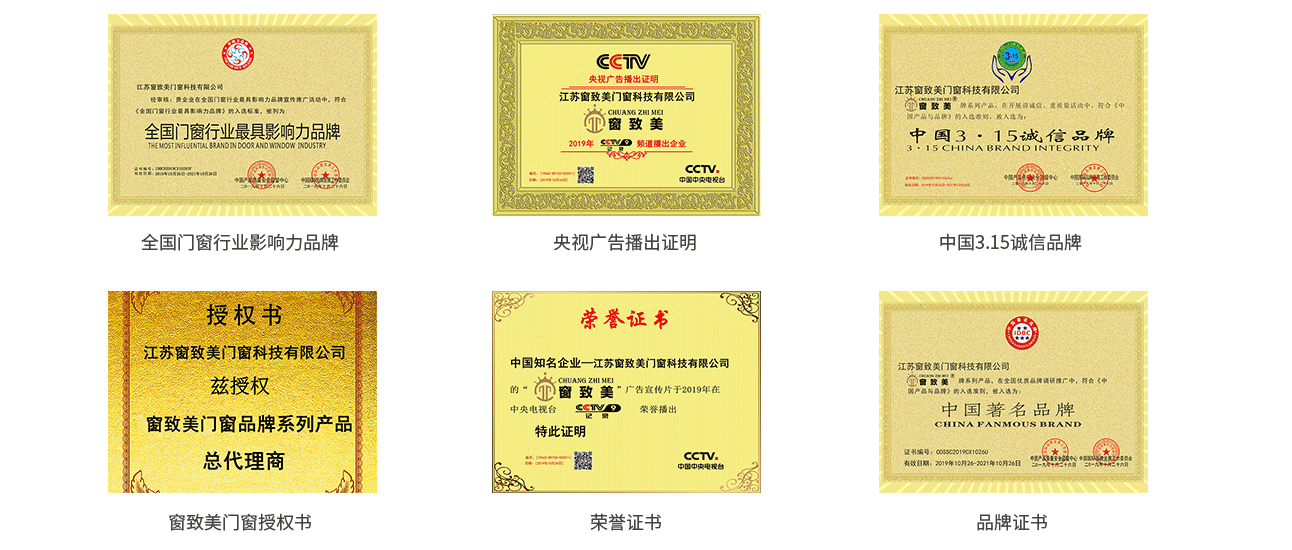 窗致美門窗榮譽資質